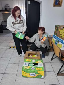 Onze vrienden in Roemenie hebben in Mei ook vier bananendozen met levensmiddelen en schoonmaakmiddelen gebracht aan het weeshuis.